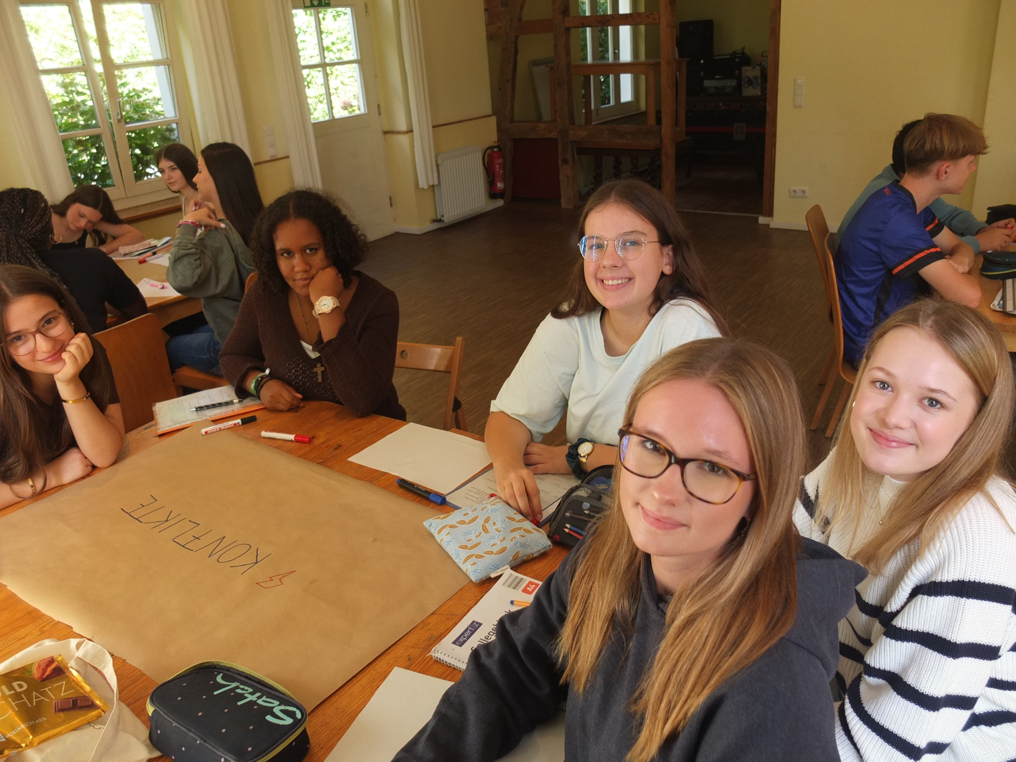 Bereits in der zweiten Schulwoche verbrachten 20 Schülerinnen und Schüler der 10. Klassen unter der Leitung von Frau Steinborn und Herr Sons und drei Co-Coaches aus der EF intensive Seminartage auf dem Hof Fahrenscheidt in Velbert-Langenberg, wo sie zu Streitschlichtern ausgebildet wurden.