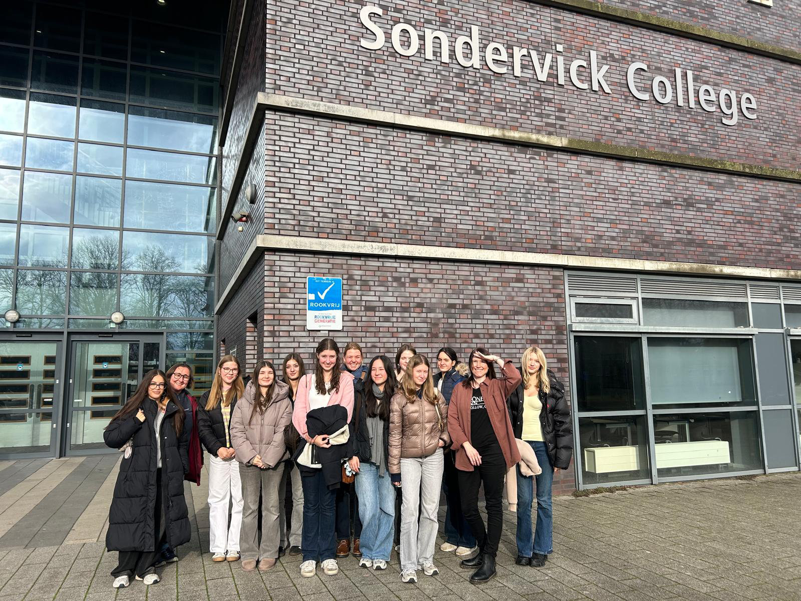 Zum dritten Mal in Folge haben Velberter Schülerinnen der 10. Jahrgangsstufe gemeinsam mit Frau Flucht und Frau Herzog unsere Partnerschule in Veldhoven, das Sondervick College, besucht. Im Zentrum dieses Jahr stand die Frage, wie gutes Design unsere Städte attraktiver und nachhaltiger machen kann. Hierzu tauschten wir nicht nur Ideen mit den niederländischen Schülerinnen und Schülern in Veldhoven aus. Wir verbrachten auch drei Tage in Eindhoven, der Stadt des Lichts, in der jährlich die Dutch Design Week stattfindet.