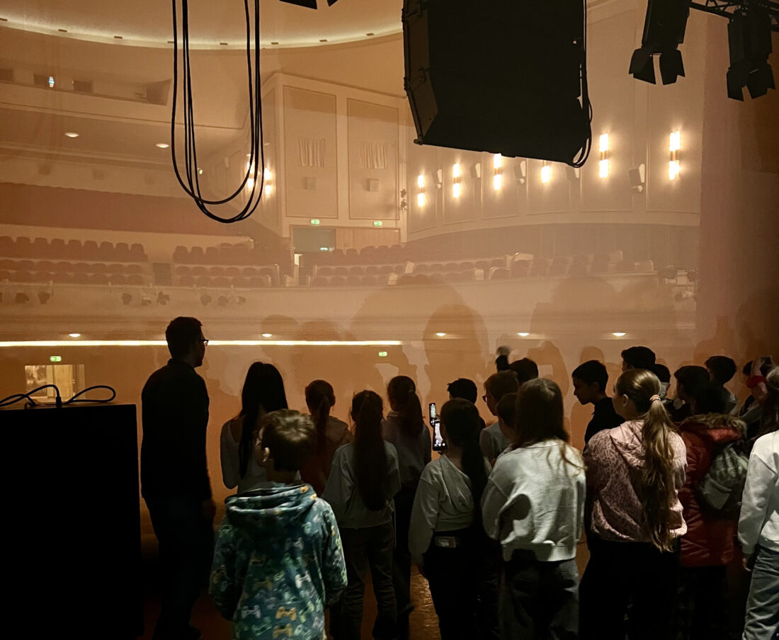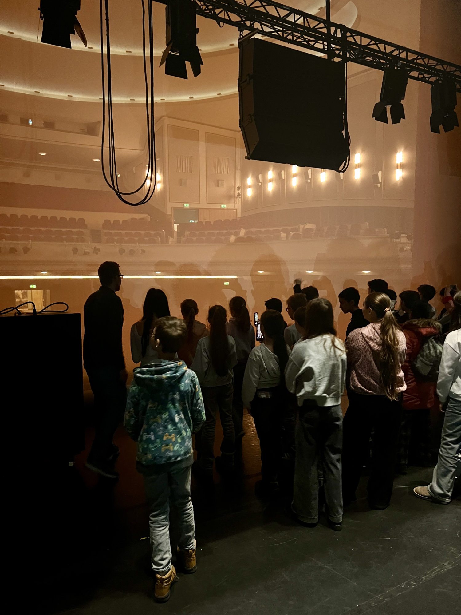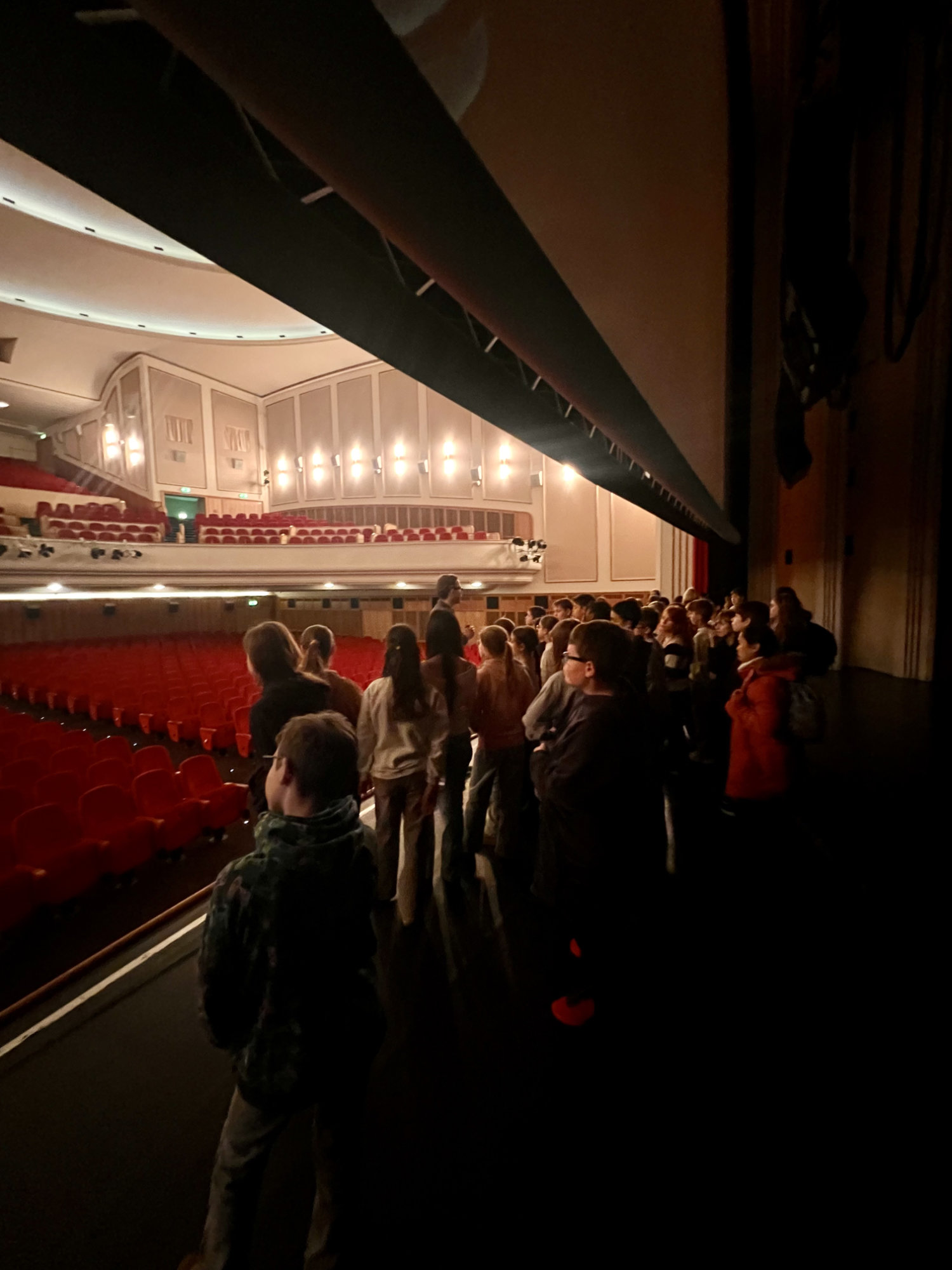 Im Dezember machten sich die Klassen 5b und 6b gemeinsam auf den Weg zur Lichtburg in Essen – dem ältesten und größten Kino Deutschlands. Dort erwartete uns zunächst eine spannende, fast einstündige Führung durch das traditionsreiche Kino. Wir erfuhren viele interessante Fakten über die Geschichte der Lichtburg, die beeindruckende Technik hinter der großen Leinwand und die zahlreichen Premierenveranstaltungen, die hier regelmäßig stattfinden.