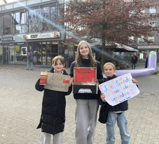 Letzten Donnerstag beteiligten sich Schülerinnen und Schülern der drei sechsten Klassen an der Aktion Sichtwechsel und sammelten Spenden für Straßenkinder weltweit in der Velberter Innenstadt. Sie hatten sich auf diesen Vormittag vorbereitet und verkauften selbstgebackene Kuchen und Muffins, boten Gebasteltes an, spielten Instrumente, wie z.B. Saxofon und Trompete, turnten, fuhren Einrad und vieles mehr. Mit den 1306,80 €, die die Schülerinnen und Schüler durch ihre Arbeit sammelten, unterstützt die Organisation Terre des Hommes Straßenkinderprojekte weltweit....